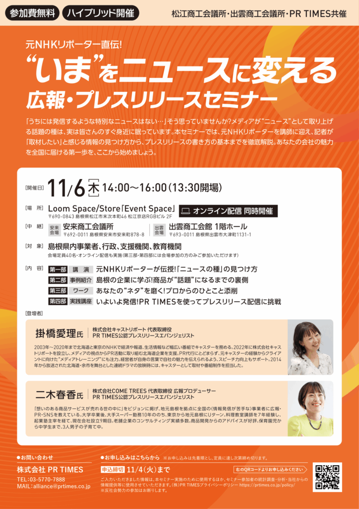 主 催:松江商工会議所/出雲商工会議所/安来商工会議所/PR TIMES