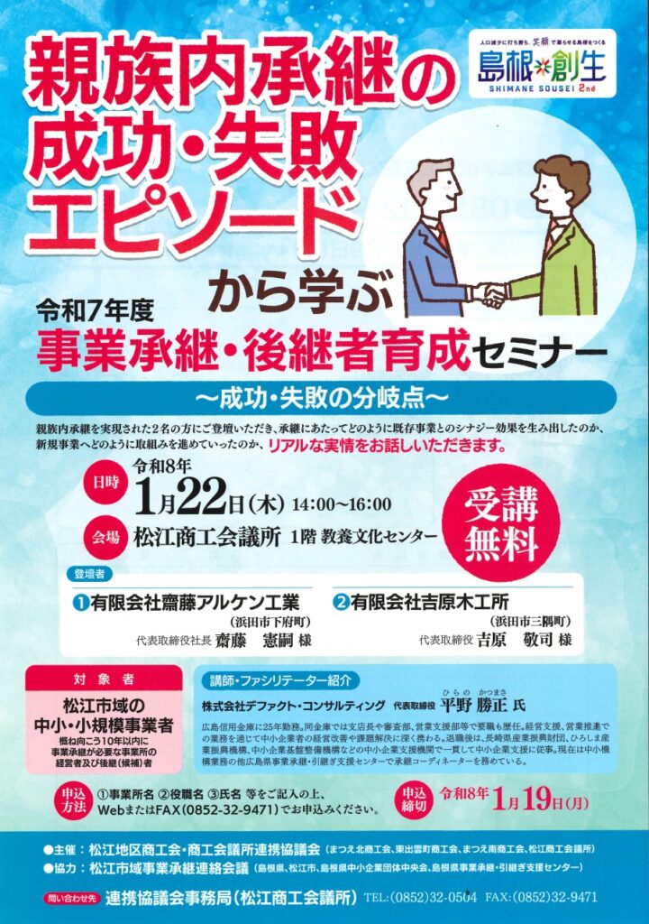 - 【親から子へ、会社をどう渡す?】親族内承継の成功・失敗エピソードから学ぶ事業承継・後継者育成セミナーを開催します。