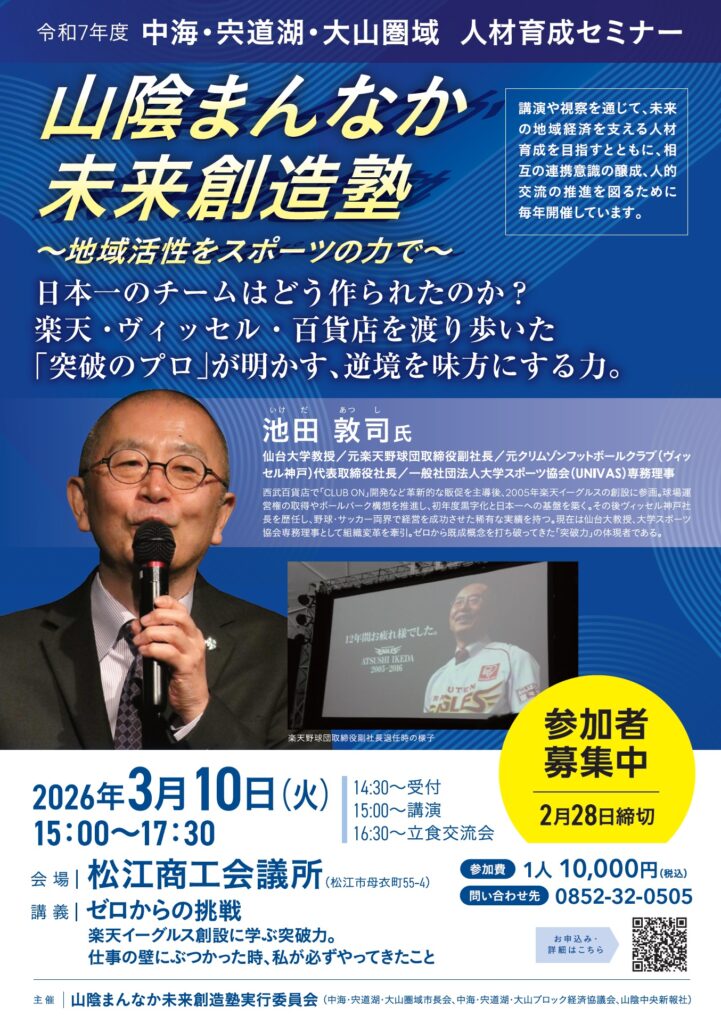 山陰まんなか未来創造塾実行委員会(中海・宍道湖・大山圏域市長会、中海・宍道湖・大山ブロック経済協議会、山陰中央新報社)では、
