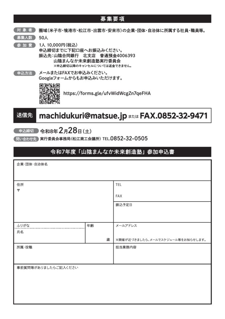 山陰まんなか未来創造塾チラシ/参加申込書_260310